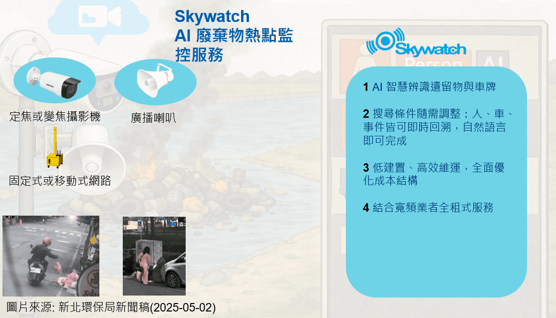 AI 智慧辨識遺留物與車牌搜尋條件隨需調整:人、車、事件皆可即時回溯,自然語言即可完成低建置、高效維運,全面優化成本結構